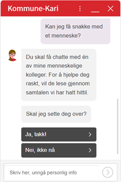 Samspillet mellom chatbot og betjent chat legger til rette for at kommuner kan levere en høyere grad av innbyggerservice hele døgnet, samt enklere og mer strukturert håndtering av innbyggerdialoger internt.