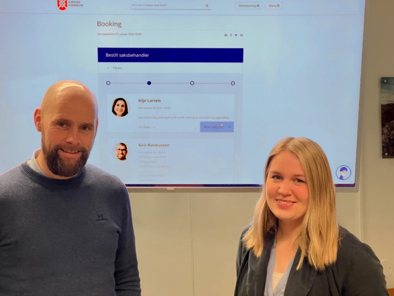 Siden januar 2021 har Karmøy kommune sine innbyggere kunne booke møte med saksbehandlere innen areal- og byggesaker direkte fra kommunens nettsider – enten fysisk, via Teams eller over telefon. De kan også velge å få svar på spørsmålene på e-post. Hver saksbehandler oppgir når de har ledig tid, og når innbyggeren booker et møte på nettsiden, synkroniseres dette automatisk med saksbehandlers kalender. Saksbehandler får en møteinnkalling, og bruker mottar bekreftelse for dato og tid på SMS og e-post. Alt dette skjer automatisk. I tillegg til å beskrive hva de lurer på i bookingen av møtet, kan innbyggerne laste opp kart, tegninger eller annen relevant informasjon.